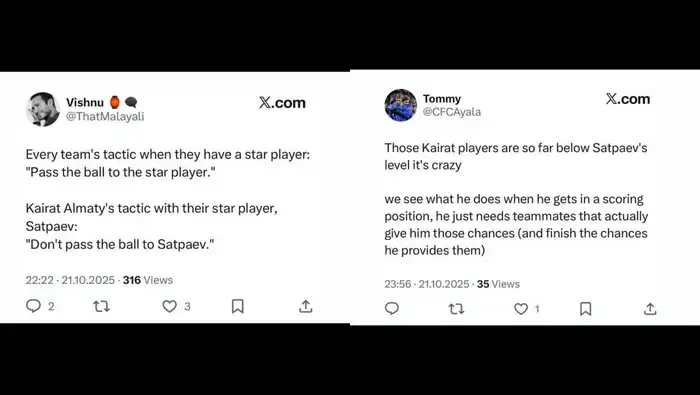 "Тактика любой команды: пасовать своей главной звезде. Тактика 'Кайрата': не пасовать Сатпаеву", — комментировали болельщики.