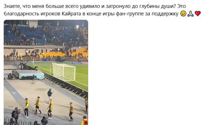 После финального свистка футболисты "Кайрата" подошли к фанатам, чтобы выразить им благодарность за поддержку.