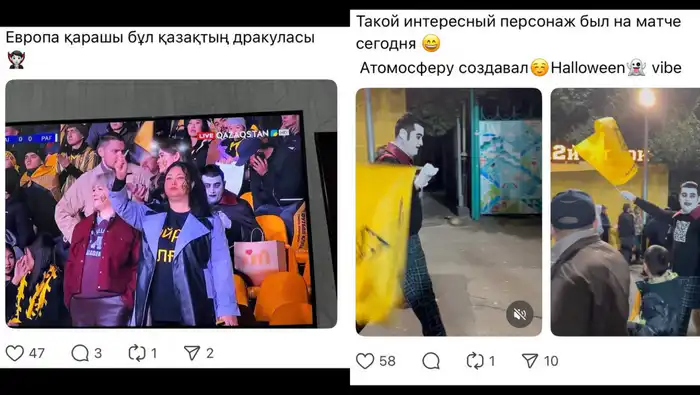 "Даже Дракула пришел поддержать 'Кайрат', 'Атмосферу создавал', — писали пользователи.
