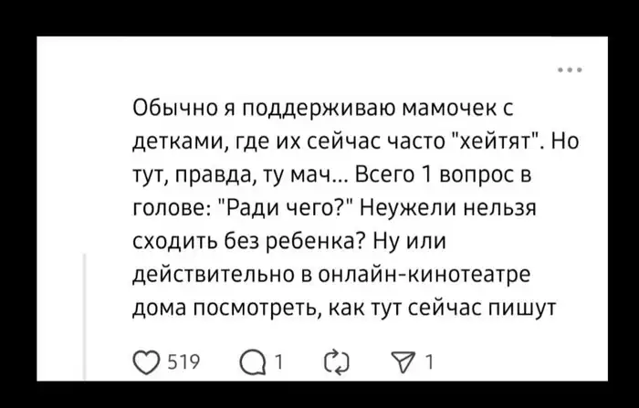 "Обычно я поддерживаю мам, но это уже слишком. Ради чего? Нельзя было посмотреть дома?"