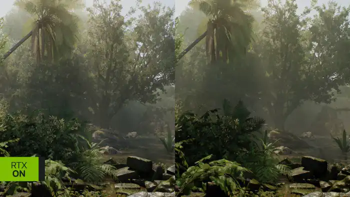 Для трассировки путей в Doom: The Dark Ages необходим запас мощности, и обе карты используют весь набор технологий DLSS 4. В Indiana Jones and the Great Circle трассировка путей добавляет новые детали, такие как рассеянные отражения и тени.