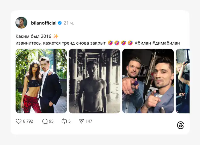 Не остался в стороне и Дима Билан, который выложил серию снимков 10-летней давности.