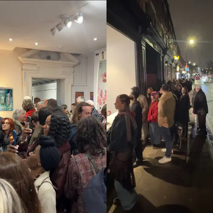 Выставка вызвала большой интерес: желающие попасть внутрь стояли в очереди, которая растянулась далеко за пределы входа.