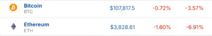 Курс Bitcoin (BTC) упал на 0,72 процента, а Ethereum (ETH) снизился на 1,60 процента, составив 3 828,61 доллара за монету. Это связано со снижением интереса к рисковым активам на фоне неопределенности в мировой экономике и увеличением торговых и геополитических рисков.