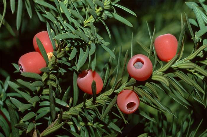- тис ягодный (все части ядовиты, особенно плоды);