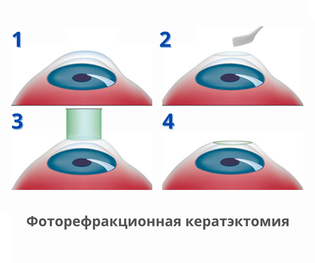 К таким методам относится фоторефракционная кератэктомия (ФРК) и её разновидности, например Epi LASIK. Это проверенная временем и широко изученная методика, которая подходит для коррекции близорукости, дальнозоркости и астигматизма. Однако в настоящее время она применяется лишь по медицинским показаниям, когда другие методы не подходят. Операцию осуществляют с помощью эксимерного лазера. Процедура включает удаление верхнего слоя роговицы и «испарение» средних слоев, позволяющее изменить кривизну роговицы, обеспечивая ее функцию очков или линз. Рана заживает в течение нескольких дней, восстанавливая прозрачность и оптические свойства глазной структуры.