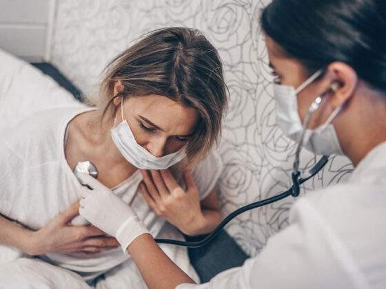 Тем не менее, проявления заболевания могут различаться в зависимости от типа пневмонии. Например, при пневмонии, вызванной COVID-19, часто нельзя услышать хрипы в легких, поскольку коронавирусная инфекция повреждает межклеточную ткань, расположенную между сосудами и бронхами. «Матовое стекло», которое видно на рентгеновских снимках, не отражает всех изменений, которые можно обнаружить с помощью стетоскопа.