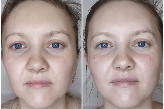 Фотографии до и после лимфодренажного массажа лица