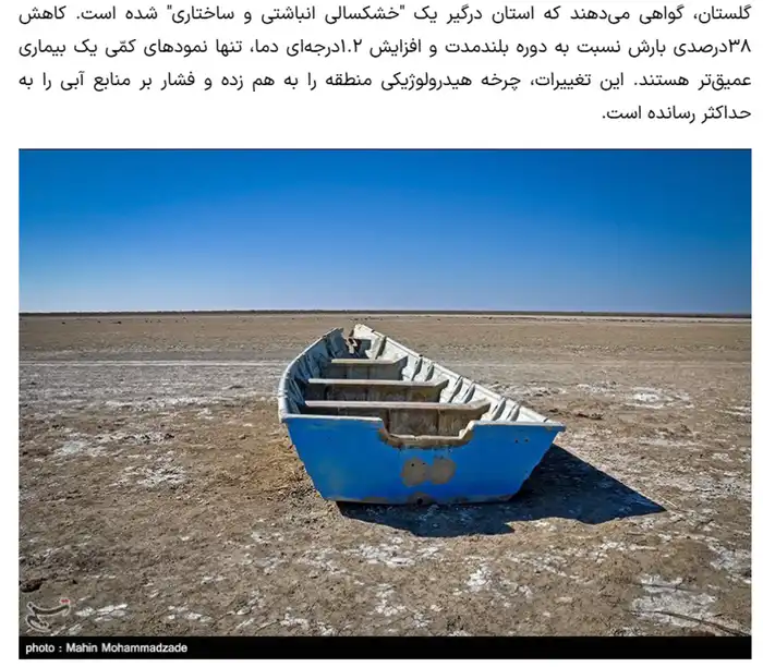 Так, иранский гражданский активист Джабир Раджаби (Jaber Rajabi) говорит, что водный кризис в его родной стране не является природным явлением. То, что происходит сегодня по всей стране, по его мнению, результат внутренней политики, системного управленческого провала и коррупции.