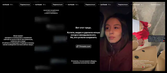 Нурила также рассказала, что после публикации получила сотни гневных сообщений, среди которых, по её словам, были даже угрозы в адрес её ребенка.