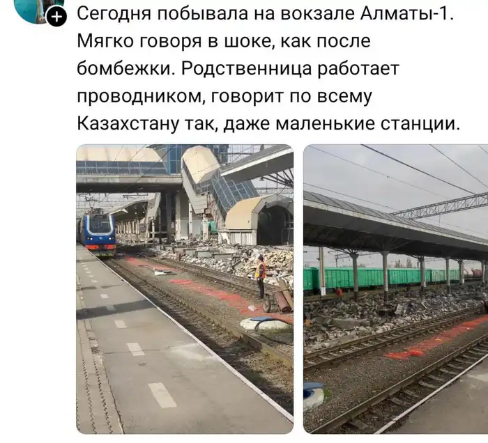 Одна из казахстанок поделилась своим недовольством в социальный сети, описав вокзал как место, которое выглядит "мягко говоря, как после бомбежки". Она отметила, что её родственница, работающая проводником, утверждает, что подобные проблемы наблюдаются по всему Казахстану, даже на маленьких станциях.