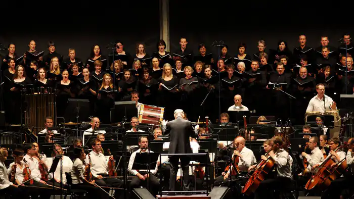 Симфонический оркестр и хор: концертная программа требует большого живого звучания - мощных оркестровых тем, вокальных партий, этнических тембров, фирменных свистовых мотивов и драматических кульминаций.