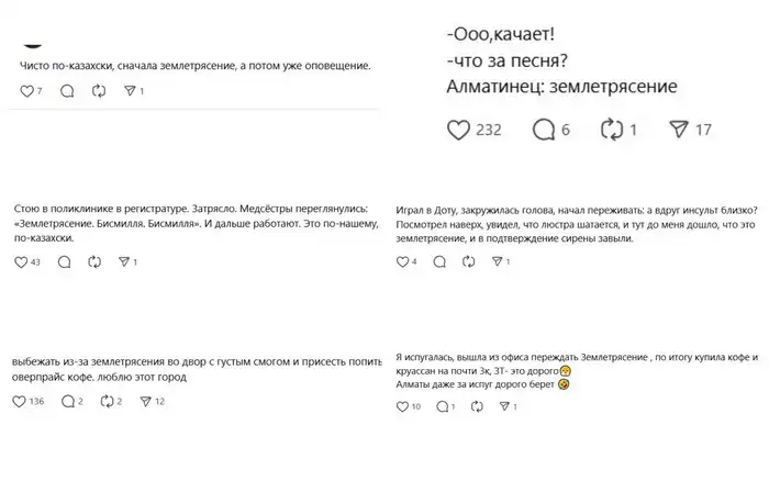 "Чисто по-казахски: сначала землетрясение, а потом уже оповещение", — отметил один из пользователей сети.
