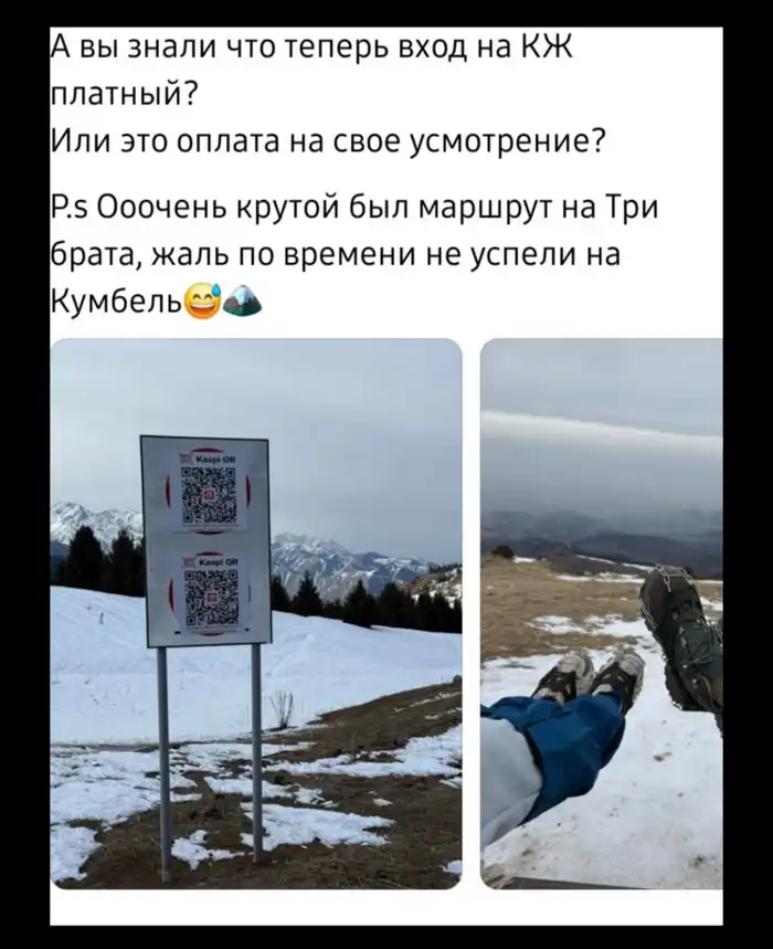 Автор поста в социальной сети сообщил о появлении QR-кодов на тропах Кок-Жайляу, которые, по его словам, предлагают оплатить вход.