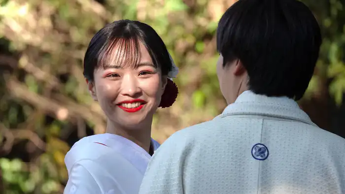 Белые кимоно, ожидание высокого гостя — и смартфон, аккуратно спрятанный в складках традиционной одежды.