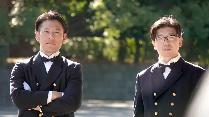 У входа в Императорский дворец — мужчины в парадных костюмах. Их присутствие ничего не объясняет, но сразу даёт понять: дальше всё будет происходить строго по правилам.