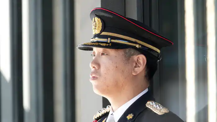 И даже усталость здесь не повод для лишнего движения. Офицеры у Императорского дворца не меняют позу и не переводят взгляд.