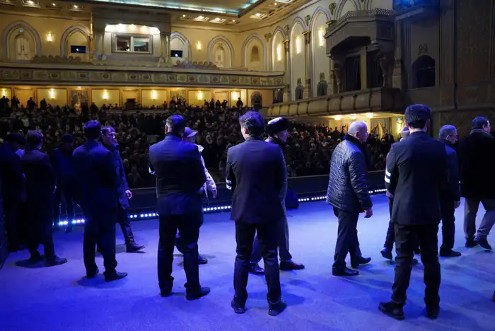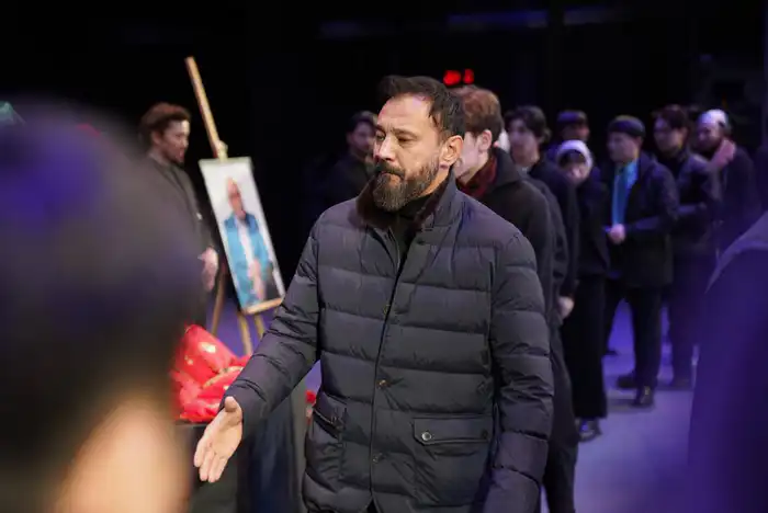 Церемония была наполнена глубокими эмоциями, и в зале звучала музыка, которая передавала атмосферу скорби и уважения.