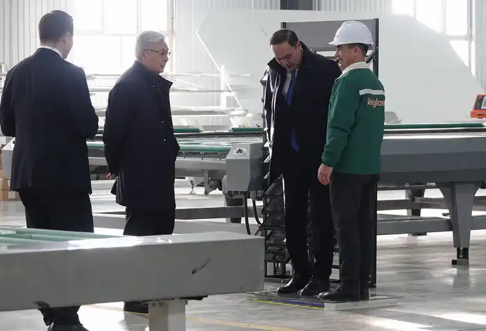 Токаев также посетил предприятие по производству закалённого стекла, где аким области показал прочность материала, попрыгав на нём перед Президентом.