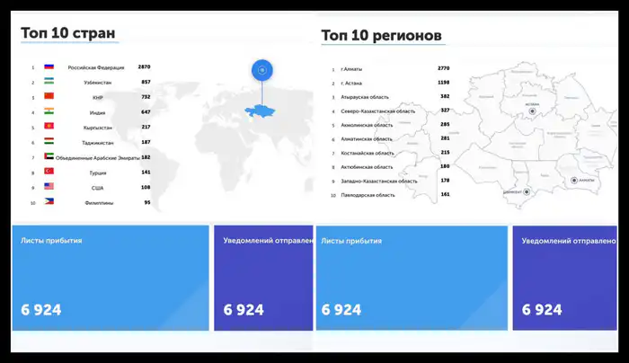 По данным системы eQonaq, с 30 декабря по 4 января в Казахстан прибыло 6 924 иностранных туриста.