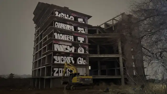 В ноябре 2025 года на недостроенном здании на пересечении проспекта Абая и улицы Тлендиева появились крупные граффити с никнеймом белорусского стримера Андрея Бурима, известного как Mellstroy. Жители соседних домов выразили недовольство из-за размещения на здании имени блогера, объявленного в международный розыск по обвинению в незаконной организации игорного бизнеса.