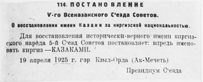 В 1925 году, в результате национально-государственного размежевания, территории, населённые казахами, были присоединены к Казакской АССР. Это переименование было связано с изменениями в политической ситуации и ослаблением влияния казаков после гражданской войны.