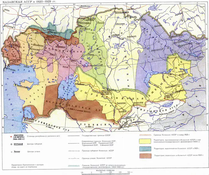 Карта Казакской АССР с 1920 по 1929 годы, управление геодезии и картографии при СНК КССР. Изображение является общественным достоянием