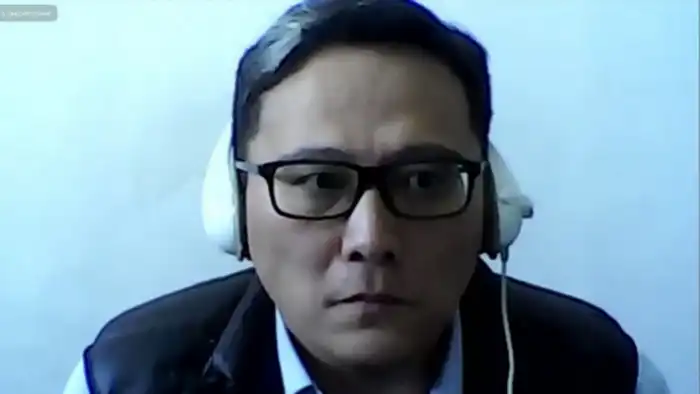 Дамир Шыныбеков во время приговора в 2020 году / Снимок экрана с онлайн-заседания