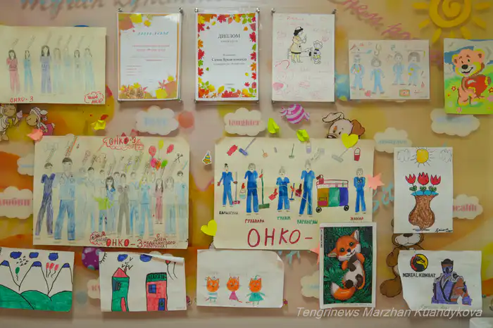 Рисунки маленьких пациентов Центра материнства и детства. Фото: Маржан Куандыкова.