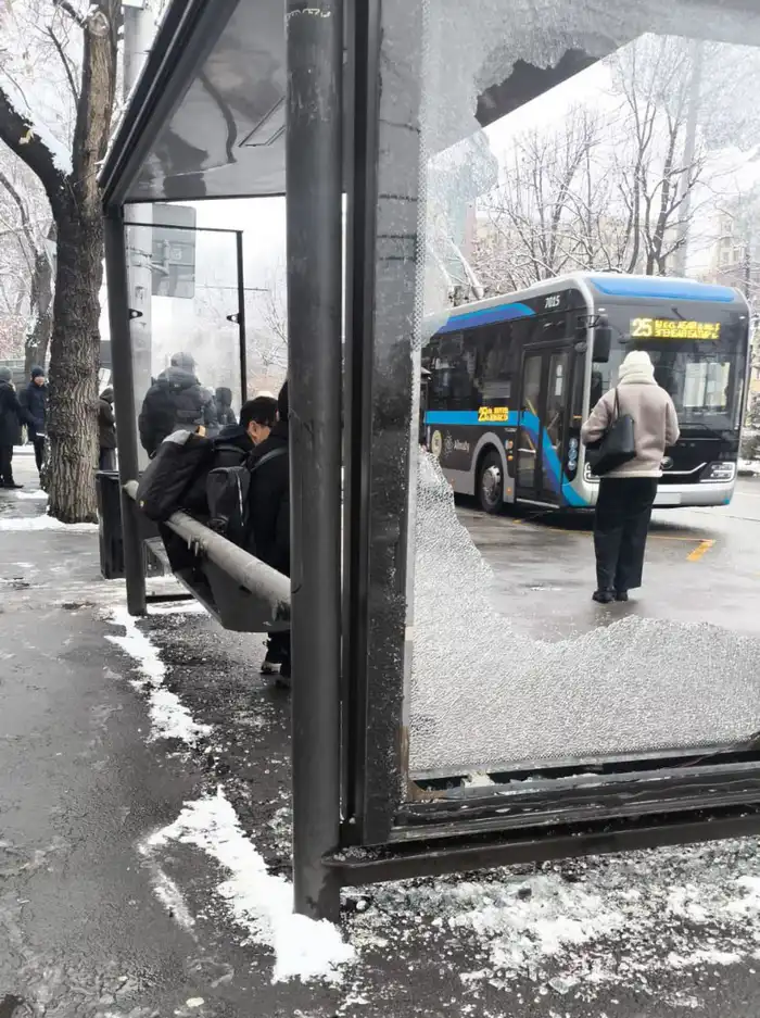 Акимат Алмалинского района Алматы отреагировал на инцидент, отметив, что разбитое стекло уже убрано, а установка нового планируется до марта текущего года.