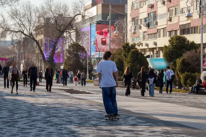 Утром температура воздуха в Алматы начала быстро подниматься, и к полудню достигла +20 градусов. На улицах заметно увеличилось количество людей, парки и скверы заполнились гуляющими.