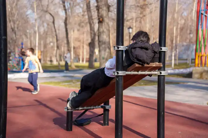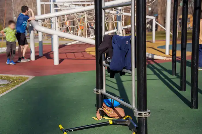 На детских площадках царила летняя атмосфера. Дети и подростки развлекались на турниках, качелях и в скейт-парках, а их куртки и толстовки оставались на перилах и спинках скамеек.