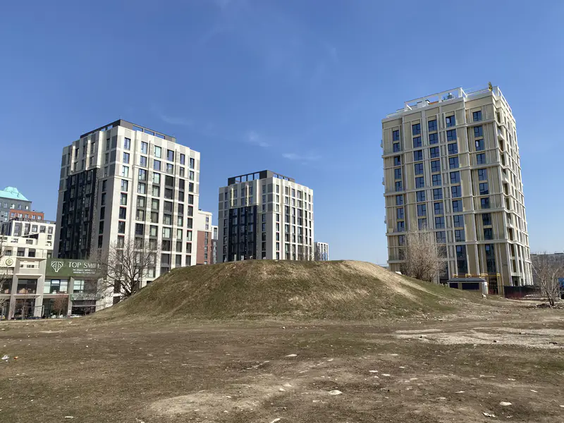 На пересечении улиц Розыбакиева и Штрауса в Алматы расположился сакский курган, датируемый V веком до нашей эры. Однако сейчас он выглядит как заброшенный участок земли, окружённый жилыми комплексами и стихийными парковками.