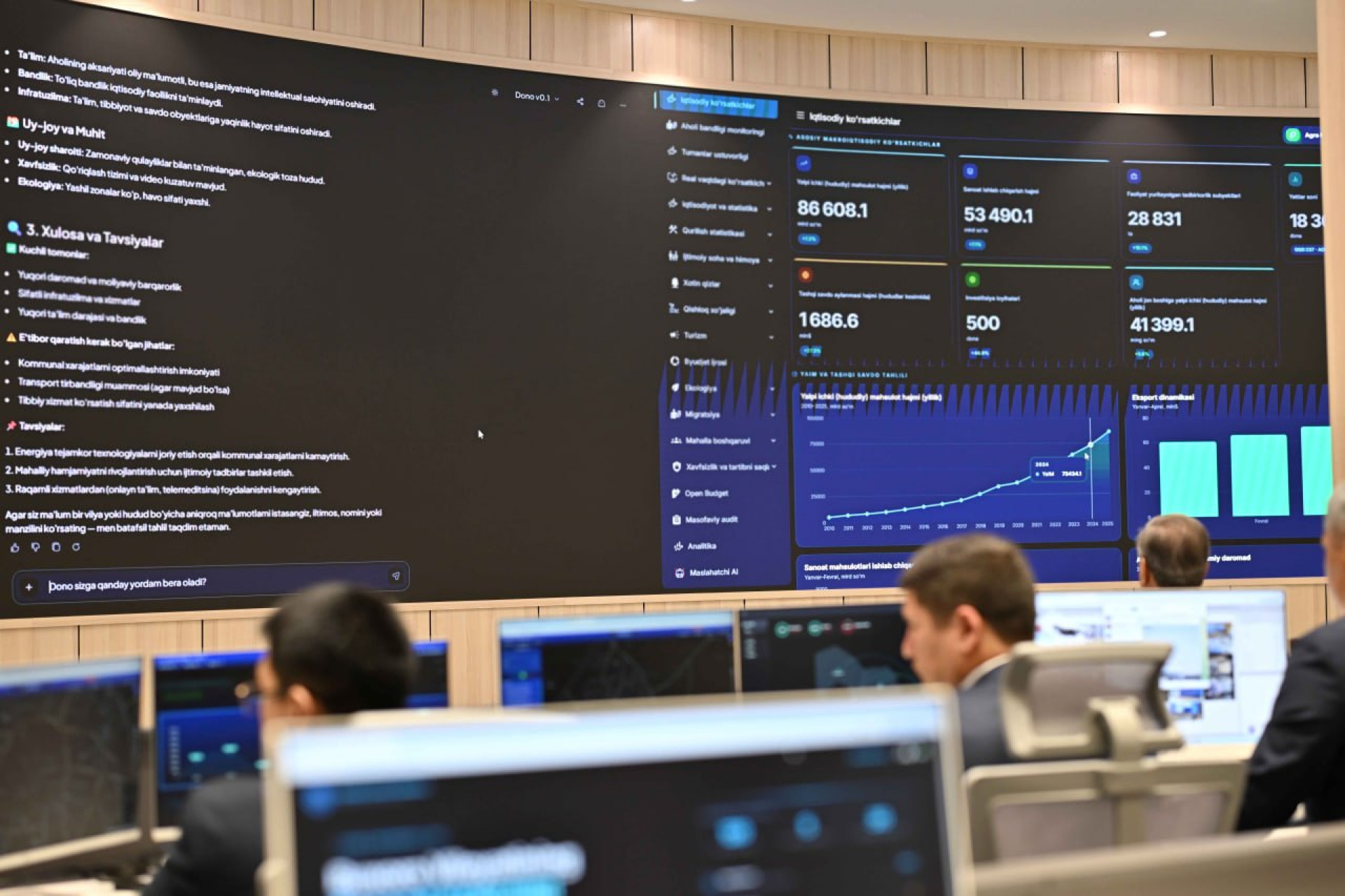 Президенты Казахстана и Узбекистана, Касым-Жомарт Токаев и Шавкат Мирзиёев, посетили Ситуационный центр в Бухаре. Это учреждение обеспечивает круглосуточное наблюдение за обстановкой в Бухарской области, включая мониторинг инфраструктуры, жилищно-коммунального хозяйства, транспортных систем, служб безопасности и природных процессов.