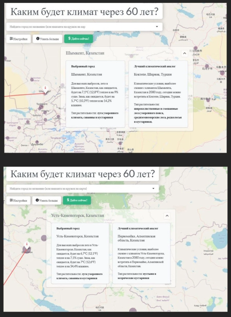 В июле американский ученый Мэтью Фицпатрик представил интерактивную карту, прогнозирующую, каким будет климат на Земле через 60 лет. Этот инструмент сопоставляет будущие климатические условия одного города с нынешними в другом. Как же изменится климат в Казахстане? Специалисты Казгидромета поделились своими прогнозами и оценили карту Фицпатрика, передает корреспондент Tengrinews.kz.