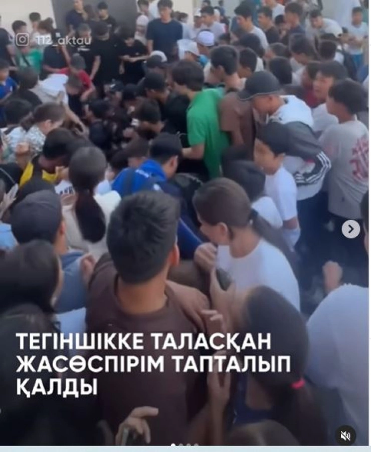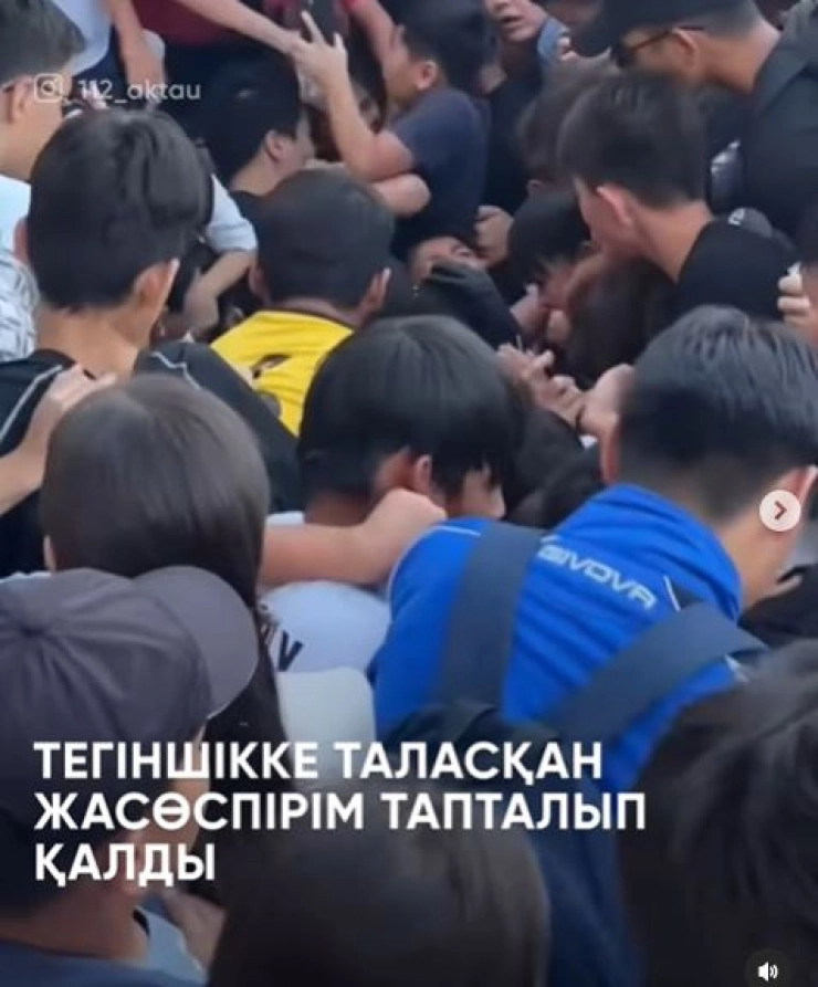 В соцсетях появилось видео большого скопления подростков и давки, произошедшей в Актау. На кадрах видно как большая группа несовершеннолетних скопилась вокруг одного из подростков, который упал. После того как суматоха завершилось несколько детей остались на земле и плакали.