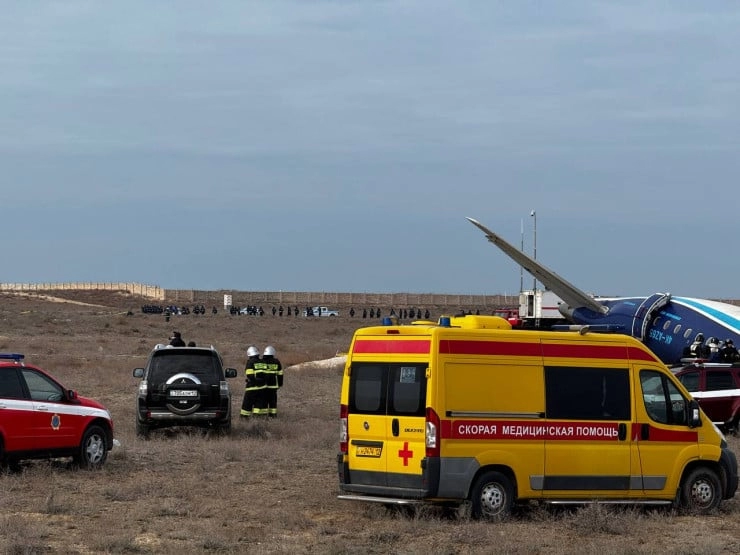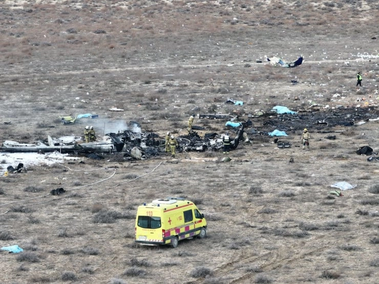Новые кадры с места крушения пассажирского самолета Azerbaijan Airlines.