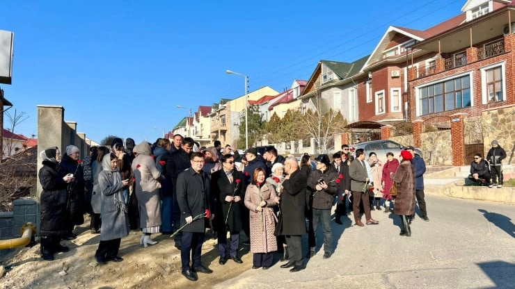 В городе Актау также однопартийцы и молодые активисты собрались у здания Генерального консульства Азербайджанской Республики, чтобы почтить память погибших.