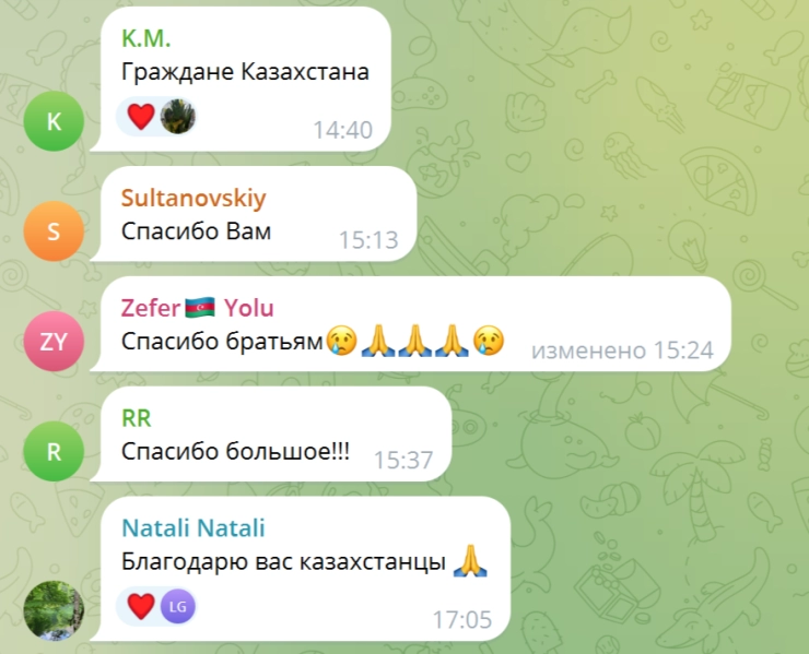 Жители Актау откликнулись на помощь и отправились сдавать кровь пострадавшим в результате крушения самолета. Актаусцы начали приходить в местный Центр крови для участия в процедуре забора крови. Это вызвало большую благодарность граждан Азербайджана.