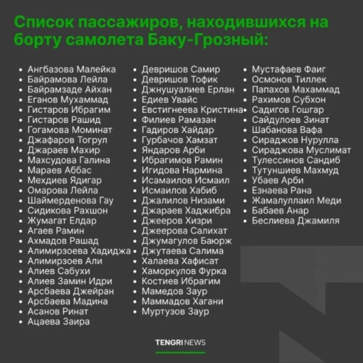 Авиакомпания Azerbaijan Airlines также опубликовала полный список пассажиров.