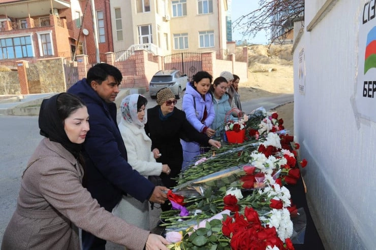 26 декабря в генеральном консульстве Азербайджанской Республики в Актау возложили цветы в память о погибших азербайджанцах, на стенах появились плакаты.