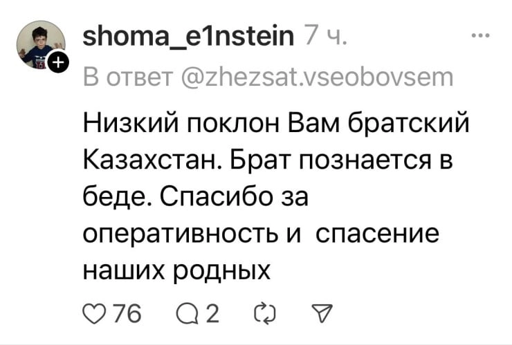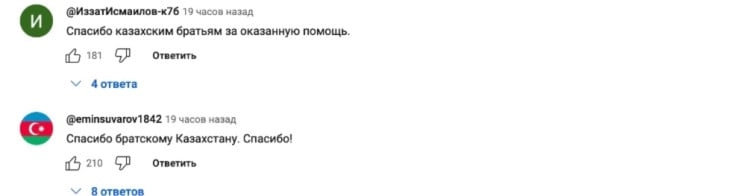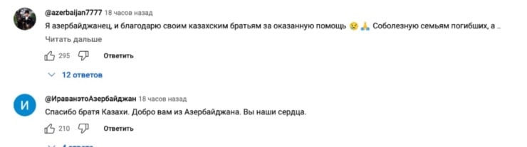 В комментариях на YouTube также к видео о катастрофе, можно заметить слова благодарности казахстанцам за помощь и поддержку.
