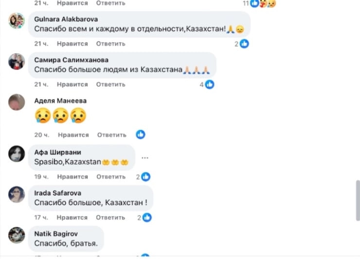 “Мы этого никогда не забудем“: азербайджанцы благодарят Казахстан