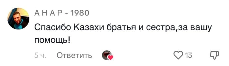 Сообщения появляются и в соцсети TikTok. В своих комментариях пользователи отмечают, что солидарность и человеческая доброта, проявленные в трудный момент, имеют огромное значение.