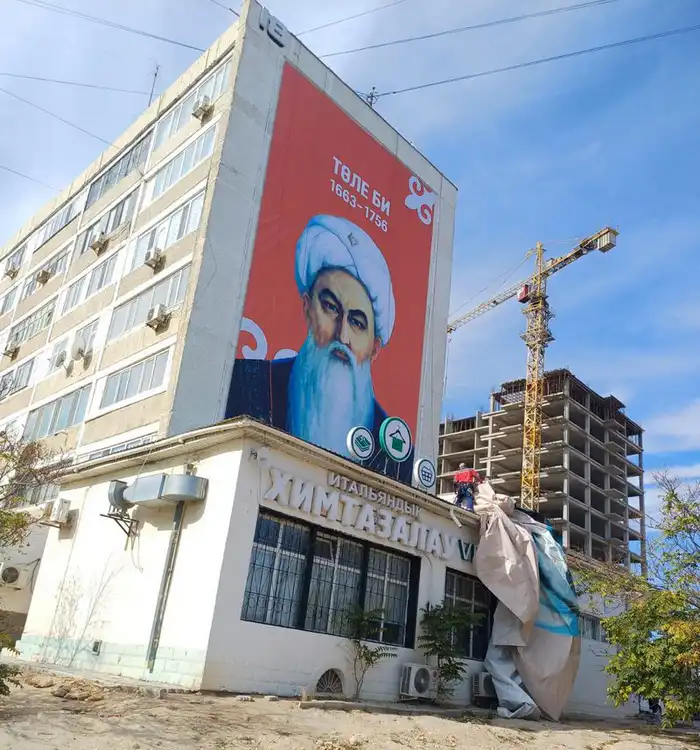 16 октября жители Актау заметили, что на фасаде дома №20 появился новый большой плакат с изображением Толе би, казахского общественного деятеля, бия Старшего жуза, оратора и поэта.