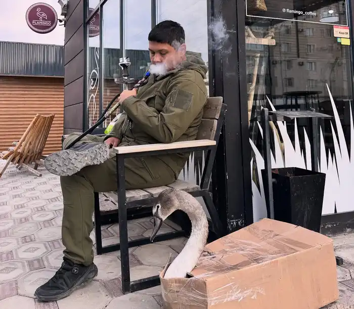 Активизм в действии: блогер спасает ослабленного лебедя на месторождении Жетыбай