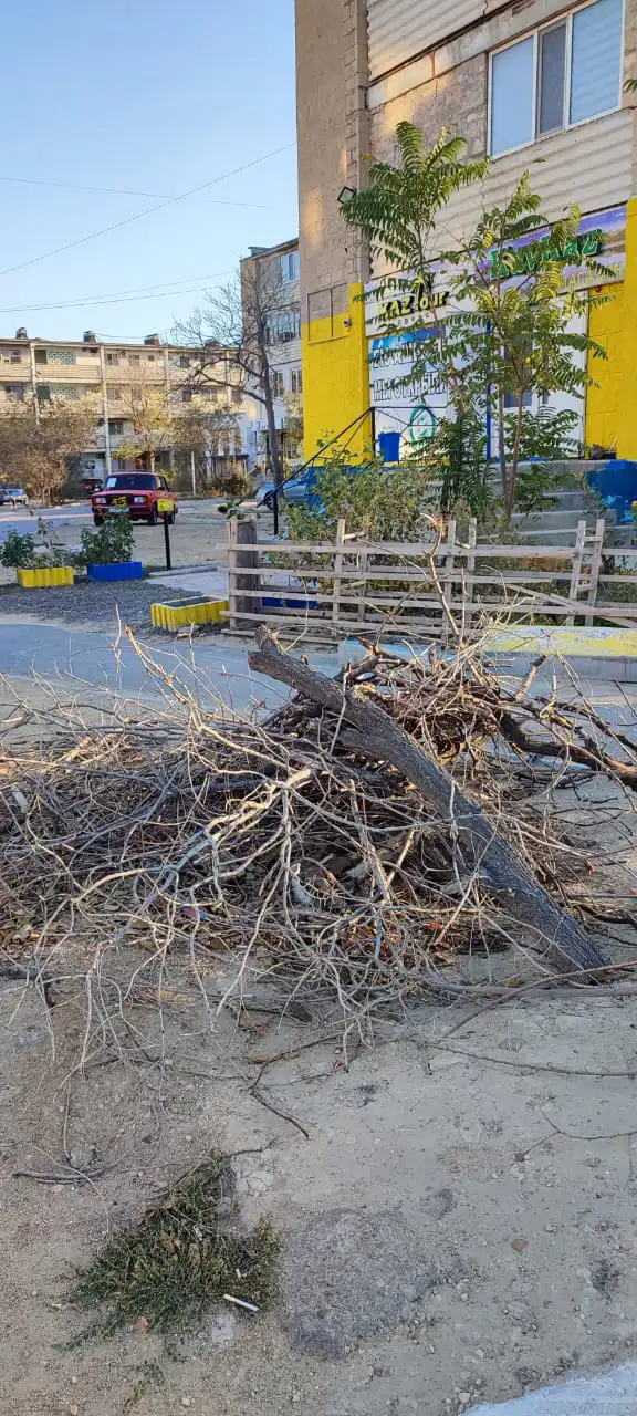 Жители Актау выразили недовольство по поводу работы коммунальных служб, указав на проблемы с вывозом мусора и остатков деревьев. По их словам, сухие ветки и обрезанные стволы деревьев лежат на территории дворов уже несколько месяцев, и обращения в различные службы не дают результатов — везде слышен один ответ: «это не наша обязанность».