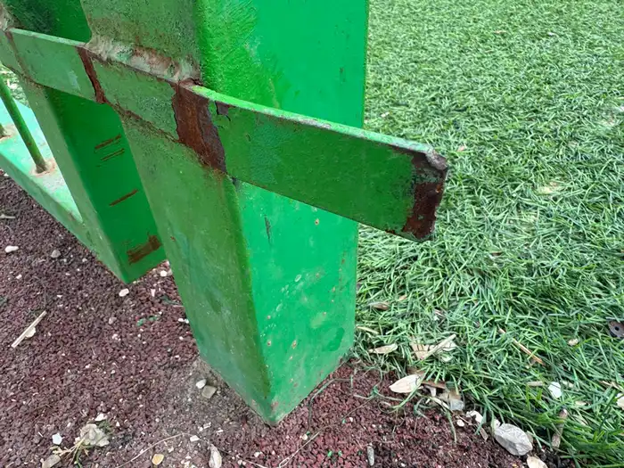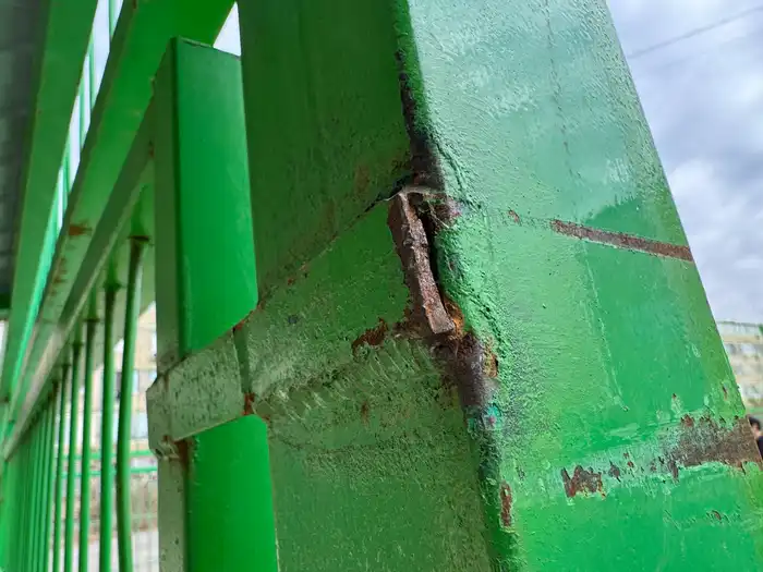По словам местных жителей, металлические элементы покрыты коррозией, часть секций начала деформироваться и отходить по швам.