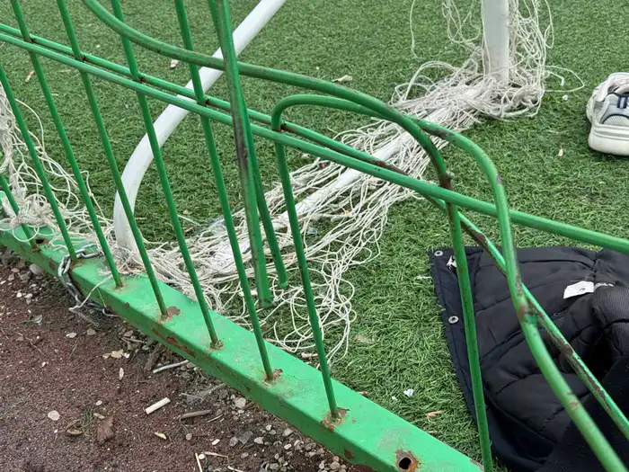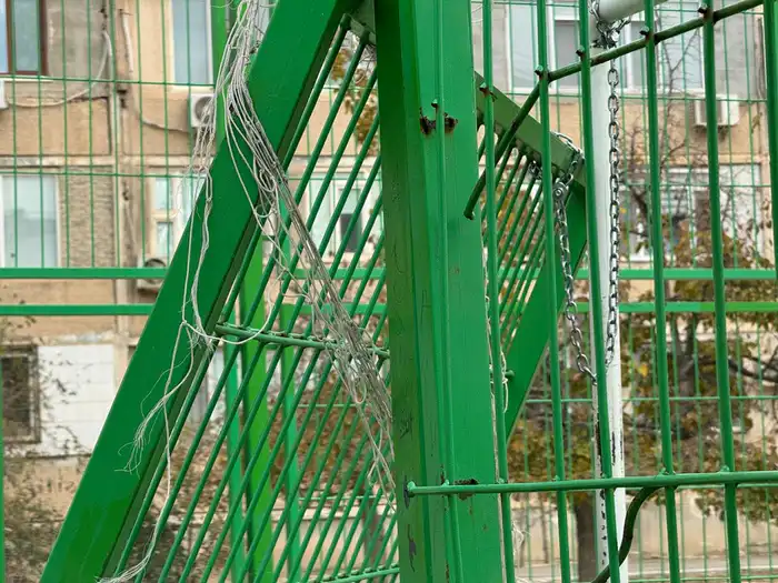 Буквально летом построили новое футбольное поле, а забор начал разваливаться уже через месяц. Трубы под краской оказались ржавыми, всё ломается даже от попадания мяча. Качество – ноль! Позор! Через некоторое время здесь вообще ничего не останется, - рассказал один из жителей.