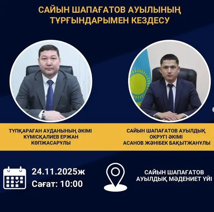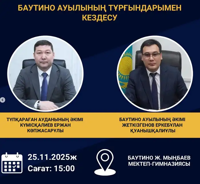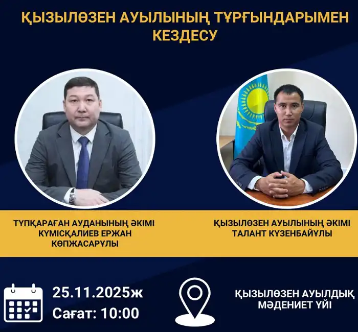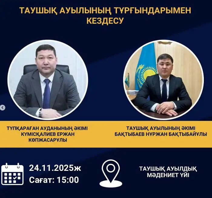 Встречи с населением Тупкараганского района состоятся 24 и 25 ноября 2025 года. Жители смогут задать интересующие их вопросы акимам сел и получить ответы напрямую от местных властей.